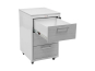 - Имеет 3 выдвижных ящика на телескопических направляющих, которые обеспечивают свободный и плавный ход ящиков даже при полной загрузке и позволяют выдвигать ящик на всю длину и использовать 100% пространства