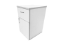 - Тумба имеет выдвижной ящик на роликовых направляющих и отделение с распашной дверкой и полкой, внутренние размеры отделения — 368x412x407 мм